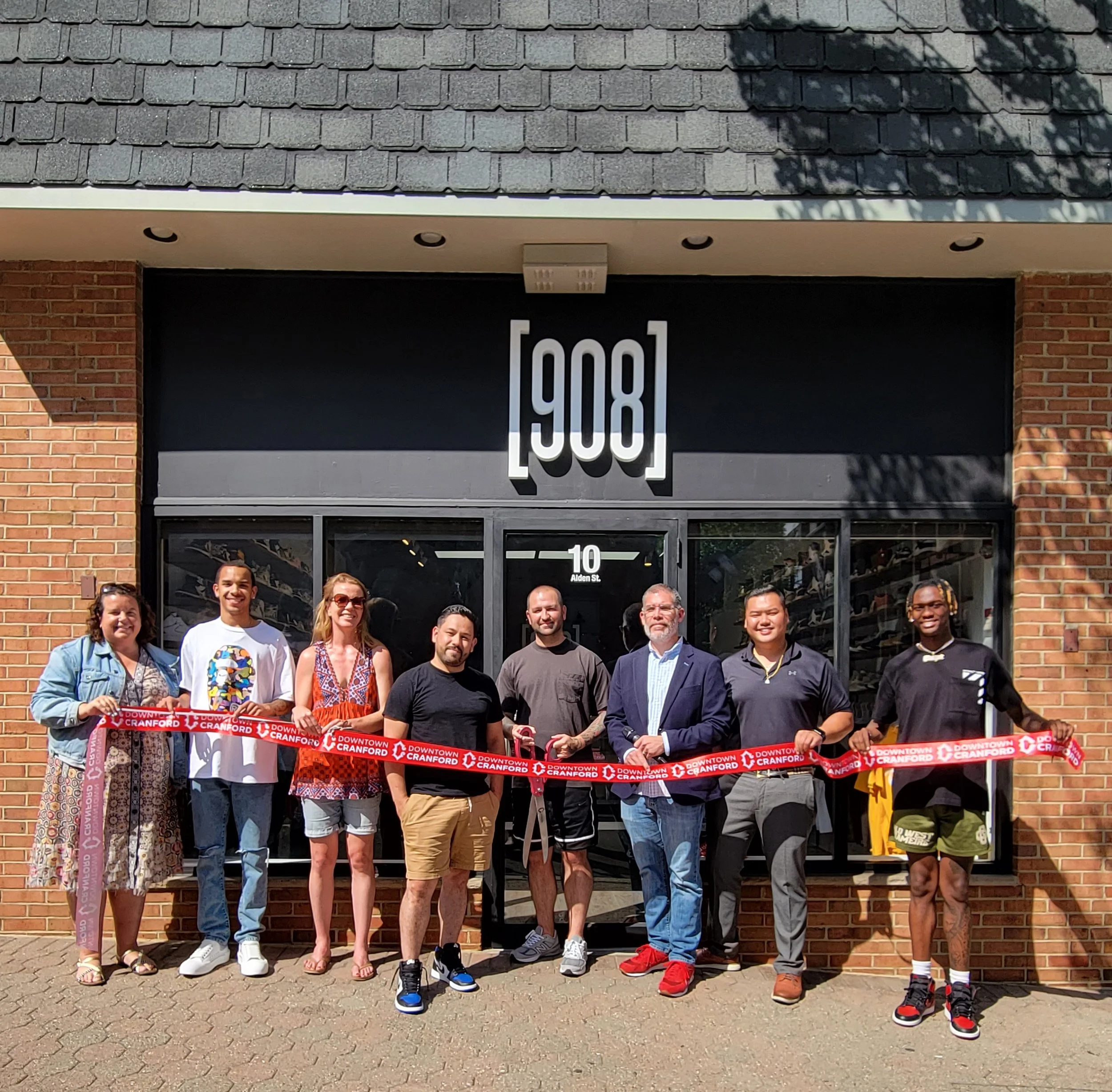 Yesterday Downtown Cranford, the DMC Board, and Deputy Mayor Jason Gareis officially welcomed 908 to the Downtown Cranford community! 908 is located at 10 Alden Street and is the second location of the high-end sneaker store owned by JP Hernandez and Gustavo Gonzalez.