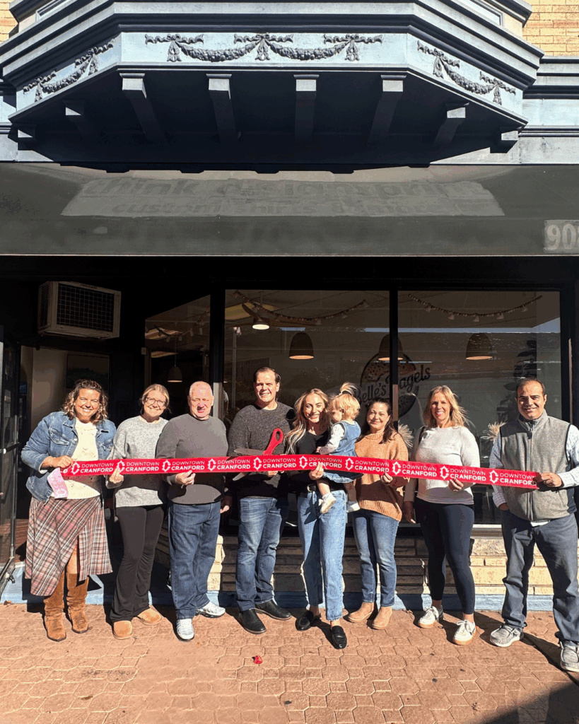 “We moved to Cranford a few years ago and are raising our daughter here,” said Cayla. “We love Cranford and feel like this is our way to give back to the community.” Downtown Cranford was thrilled to officially cut the ribbon at Belle’s Bagels with family and DMC Board members in attendance.