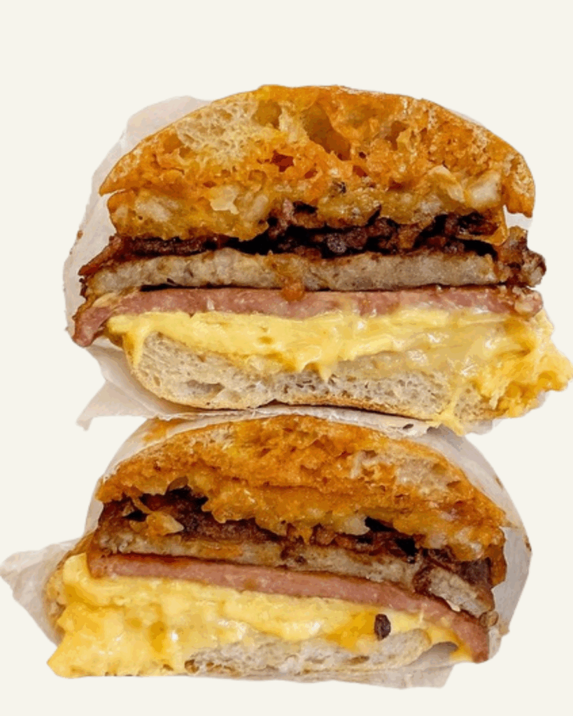 Belle’s Bagels offers 10 varieties of bagels: plain, everything, sesame, egg, whole wheat, poppy, salt, sunflower seed, French toast, and blueberry cinnamon swirl. Customers can top their bagels with butter or a selection of cream cheeses, including scallion, vegetable, and jalapeno. If you’re looking for a breakfast or lunch sandwich, Belle’s Bagels has you covered. Traditionalists can start their day off with an egg and cheese sandwich, while others may be tempted by Bacon Me Hot, Sweet and Salty, Lox Me Up, and more. There are also chicken cutlet sandwiches served on bagels, while tater tots and hash browns can be ordered as a side.