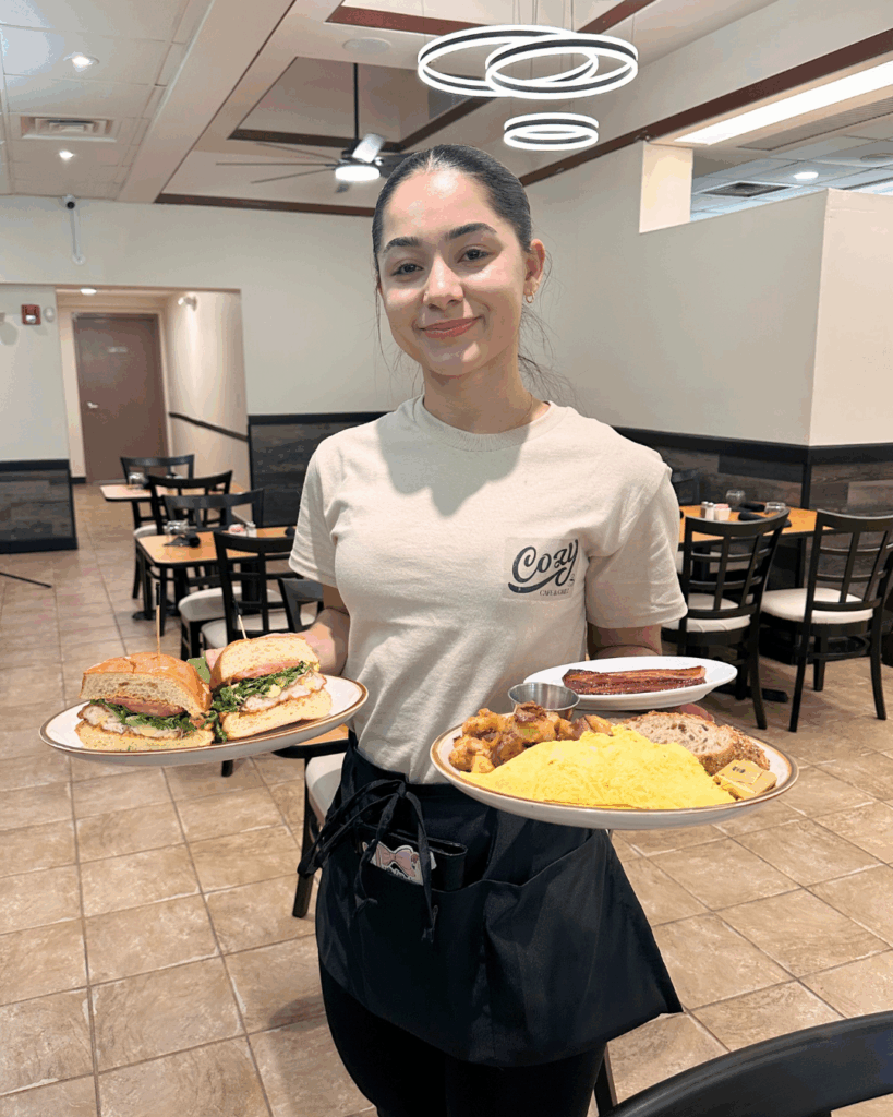 Cozy Café and Grill is open for breakfast, brunch and lunch Sunday through Wednesday, and also for dinner Thursday-Saturday. Its breakfast and brunch options include churro french toast, Belgian waffles, omelets, salads, burgers, and sandwiches. For dinner, the restaurant’s offerings range from surf and turf, shrimp risotto, and seafood paella to burgers, sandwiches, and more. Cozy Café also has a full beverage menu with hot and iced beverages, specialty lattes, hot chocolate, and mocktails. The restaurant also provides a children’s menu for the youngest (and pickiest) diners.