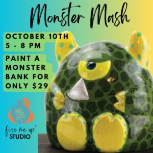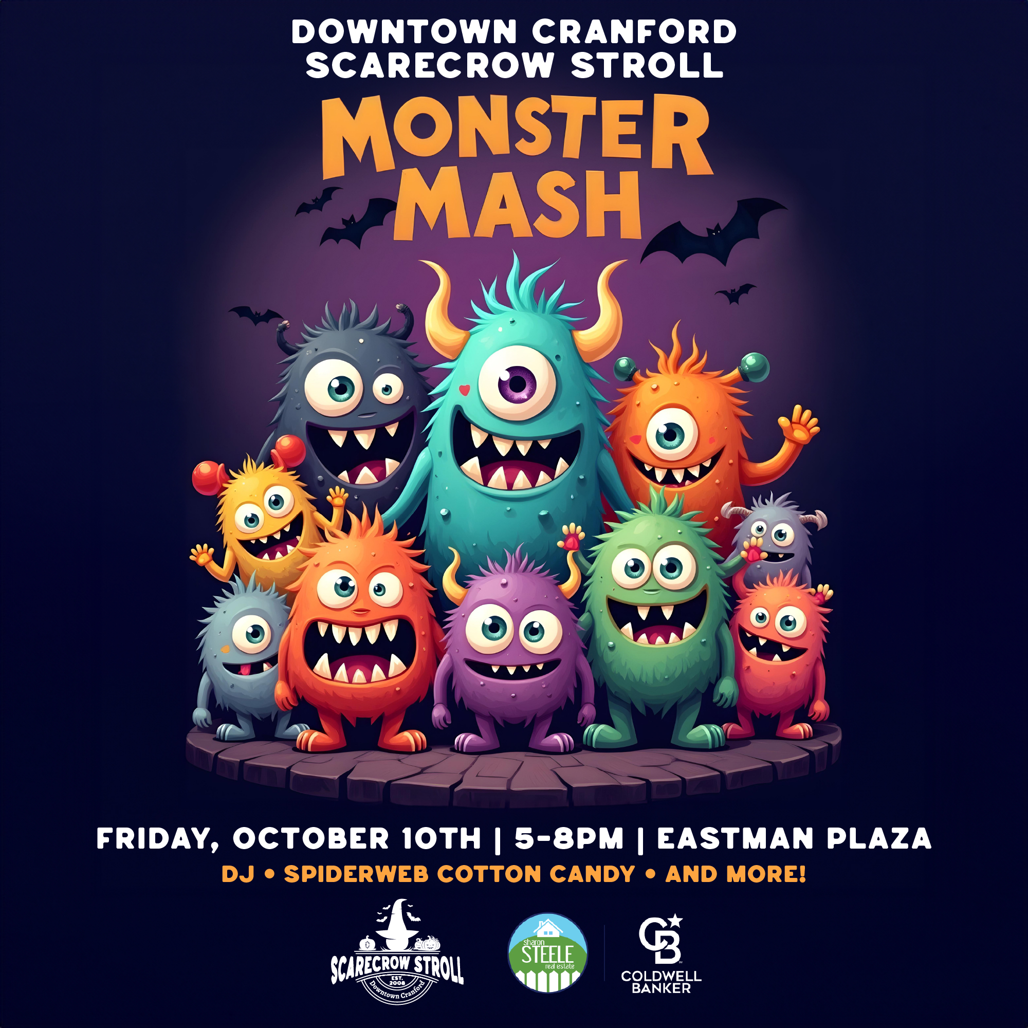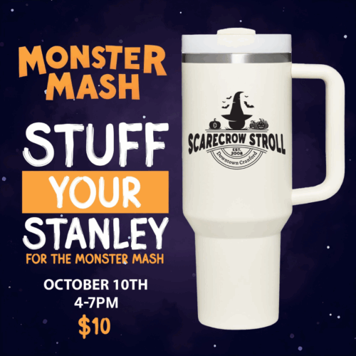 Celebrate the start of the Scarecrow Stroll this Friday night with the Monster Mash Glow Party! From 5-8PM there will be music, glow sticks, cotton candy, and more! Cranford Vanilla Bean Creamery will also have Stuff Your Stanley from 4-7PM and you can paint a monster bank at Fire Me Up Studio for only $29.