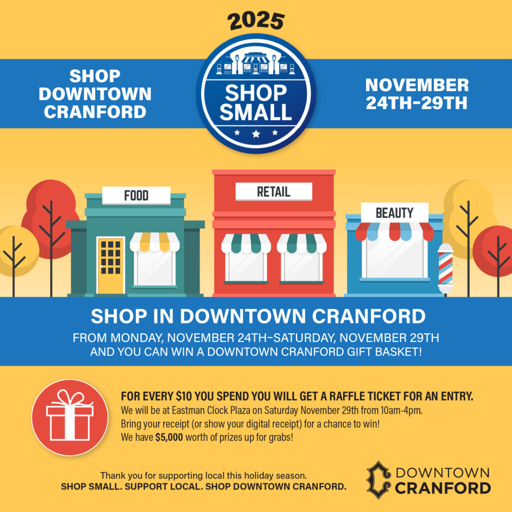 Join us on Small Business Saturday to celebrate shopping local this holiday season! Thanks to the generosity of Cranford business owners and sponsors, we’ll be giving away thousands of dollars in gift baskets! Hang on to your receipts from any local shopping you do in Cranford starting Monday, 11/25, and bring them to Eastman Plaza […]